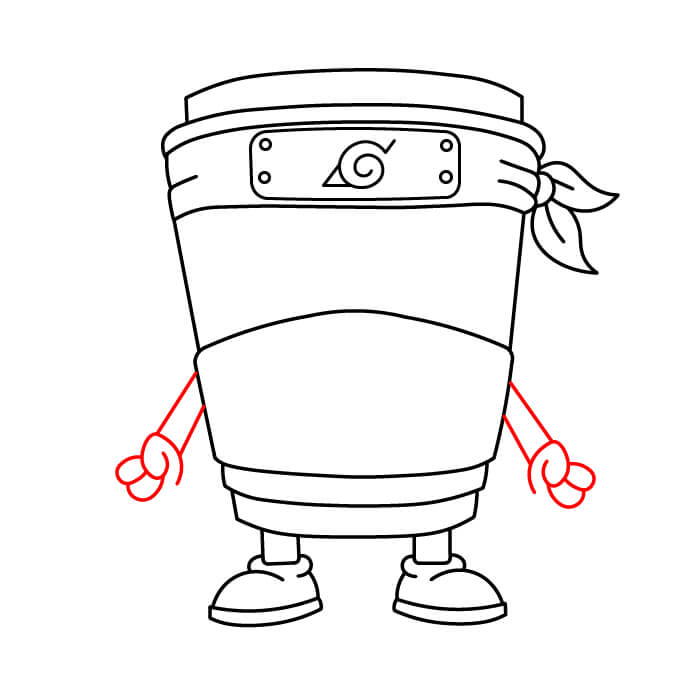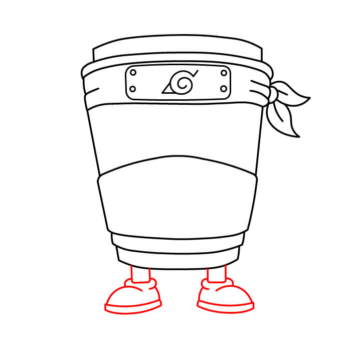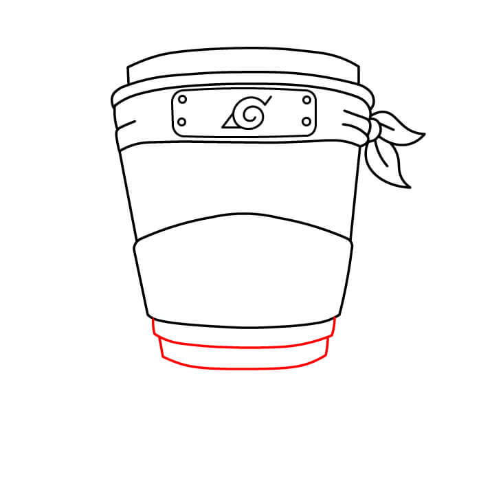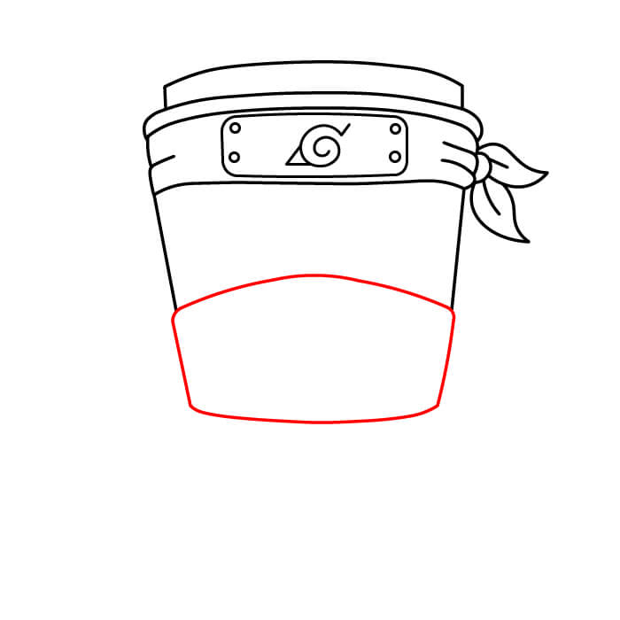 V dolní třetině těla kelímku nakreslete vodorovný obdélníkový panel, který spojuje obě boční čáry. Tento tvar je širší než vyšší a je umístěn uprostřed. Představuje spodní pás ninjovského obleku nebo návlek na kelímek.