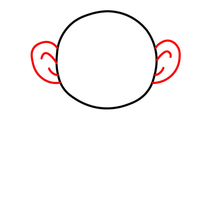 Začněte tím, že v horní polovině stránky nakreslíte velký, čistý kruh. Ten bude sloužit jako základní tvar hlavy opice.