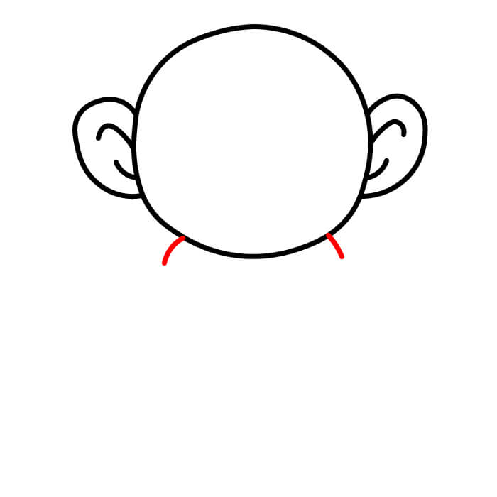 Pod spodní část hlavy přidejte dvě malé zakřivené čáry směřující dolů. Ty vytvoří krk a začátek ramen.