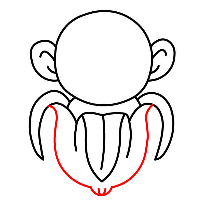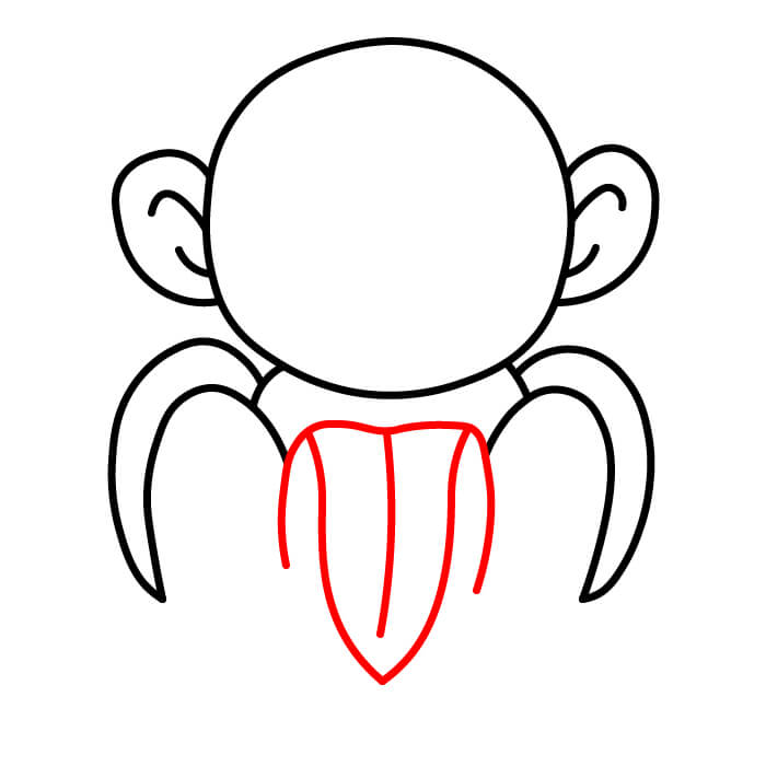 Od ramen nakreslete dvě dlouhé, zakřivené tvary směřující ven a dolů. Ty představují boky slupky banánu, která je oloupaná.