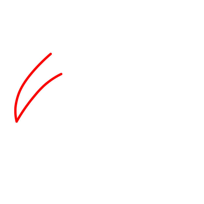 Začněte tím, že nakreslíte dlouhý, zakřivený trojúhelník směřující dolů. To bude velký zobák ptáka.
