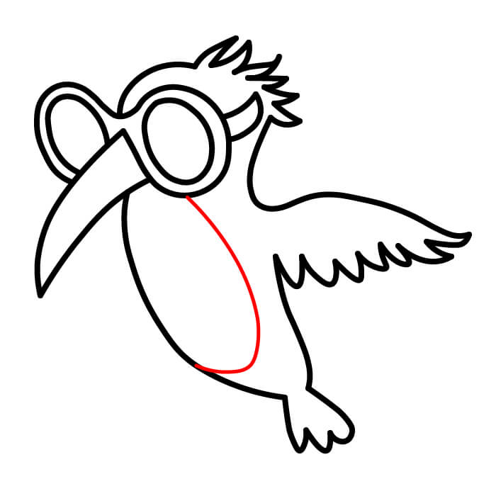 Uvnitř těla nakreslete velký oválný tvar, který začíná u brýlí a končí u ocasu. Tím oddělíte oblast břicha.