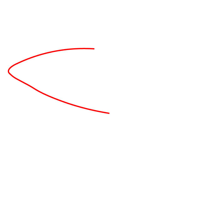 Začněte nakreslením dlouhého, zakřiveného tvaru, který se na levé straně zužuje do špičky. Tento tvar vytvoří horní část hlavy žraloka a jeho záda.