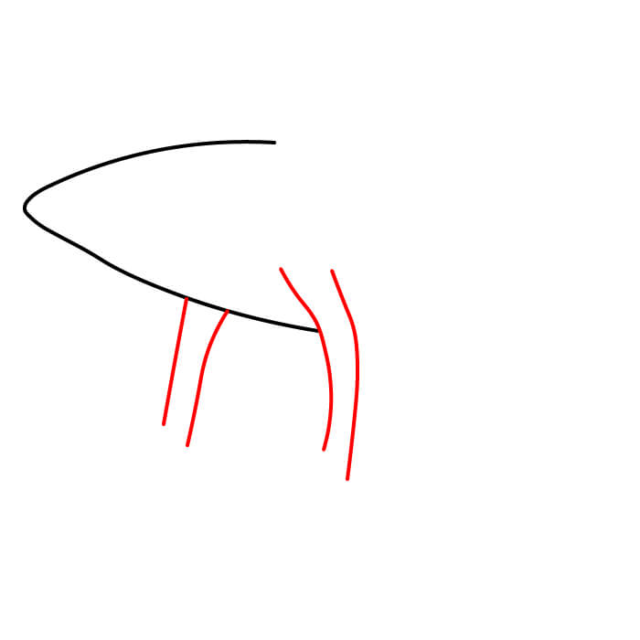 Blízko zadní části těla nakreslete další dvě zakřivené čáry, které vytvoří třetí nohu umístěnou za ostatními.