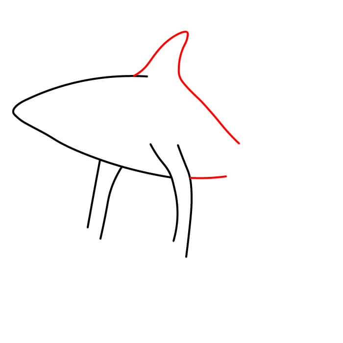 Krok 3: Nakreslete hřbetní ploutev a horní část těla