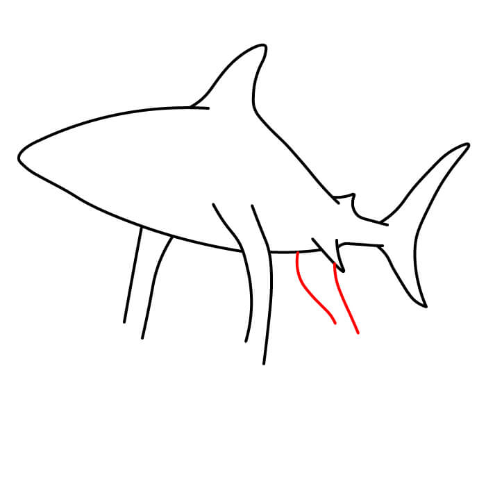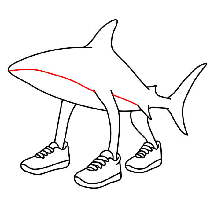 Nakreslete dlouhou, mírně zakřivenou vodorovnou čáru přes střed těla. Tím oddělíte horní část žraloka od jeho břicha.