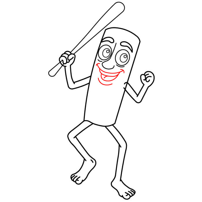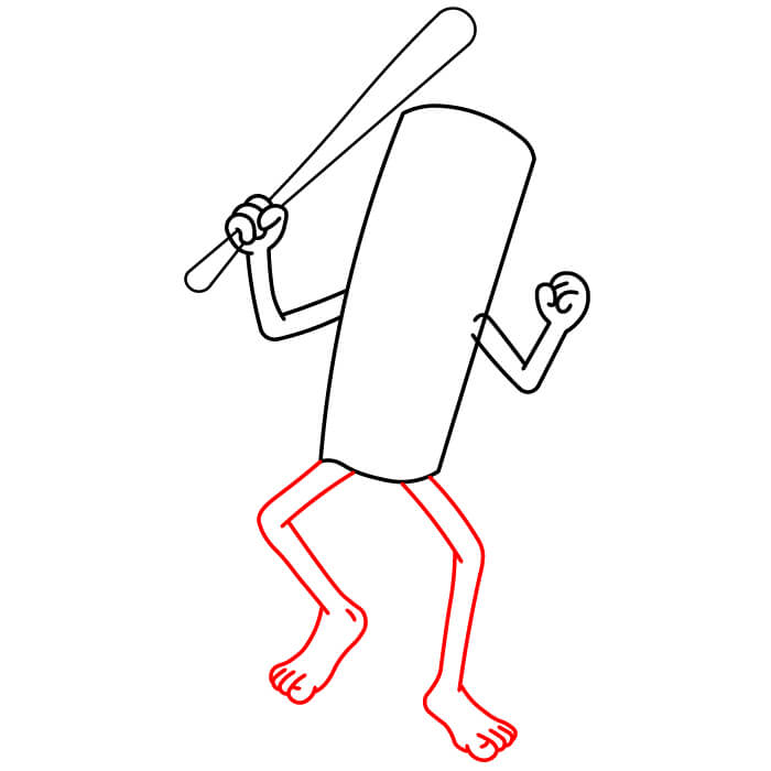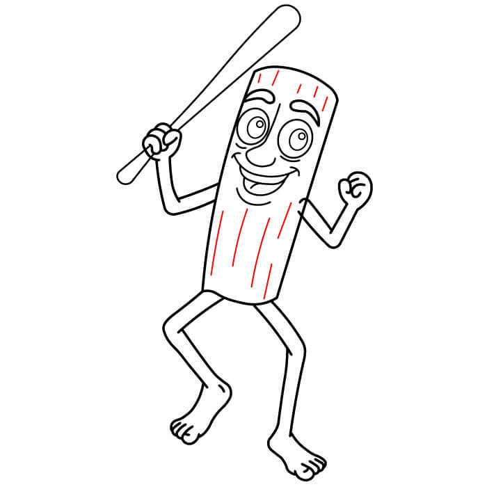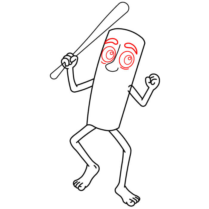 Do pravé ruky postavy nakreslete dlouhou, hladkou palici nebo kyj. Měla by být užší u rukojeti a směrem ke kulaté špičce se rozšiřovat, přičemž je držena šikmo nad hlavou.