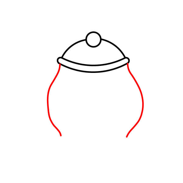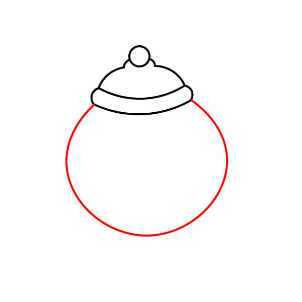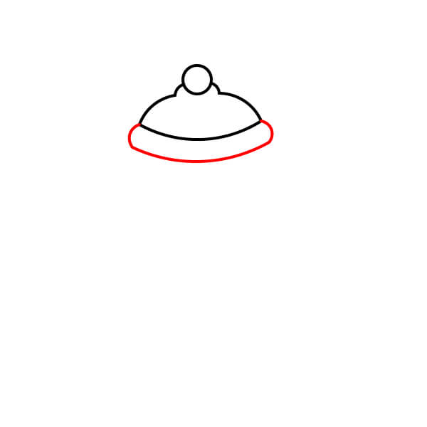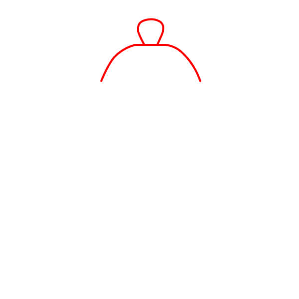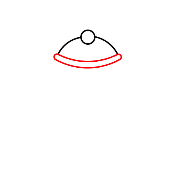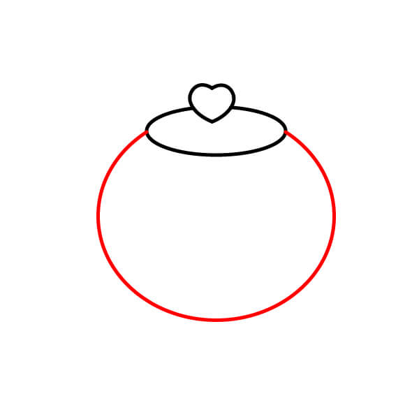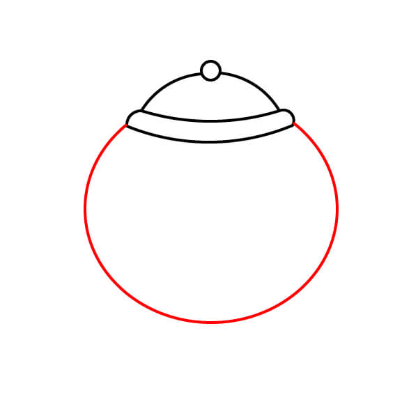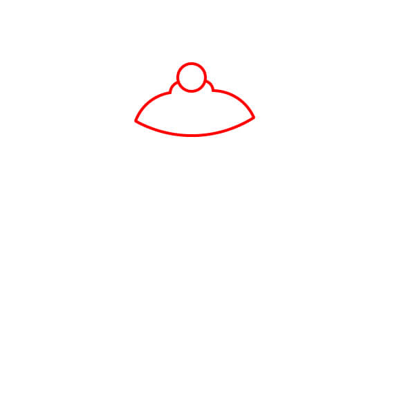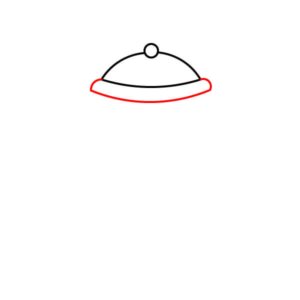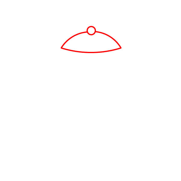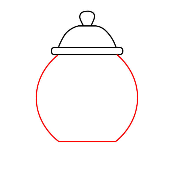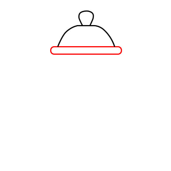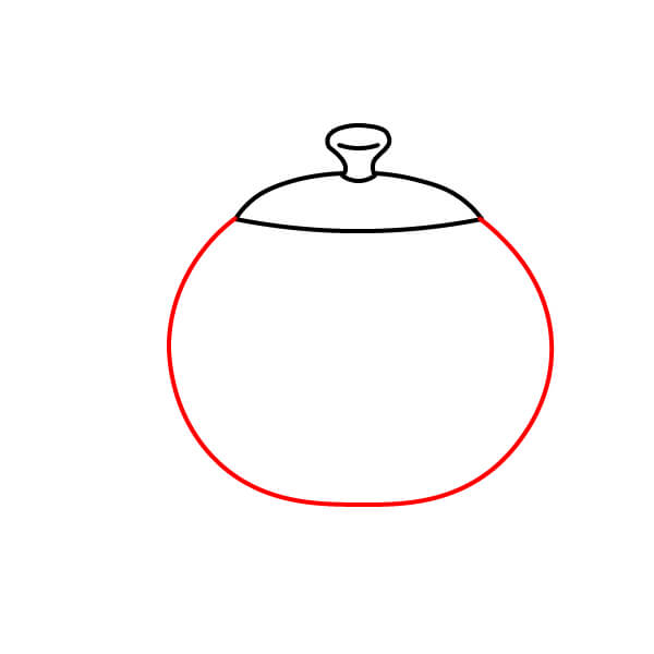 Začněte nakreslením víka. Tato část bude mít tvar velkého oblouku s malým kulatým kroužkem nahoře, který bude rukojetí víka.