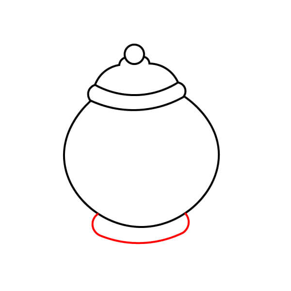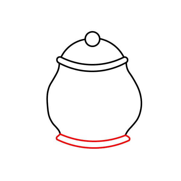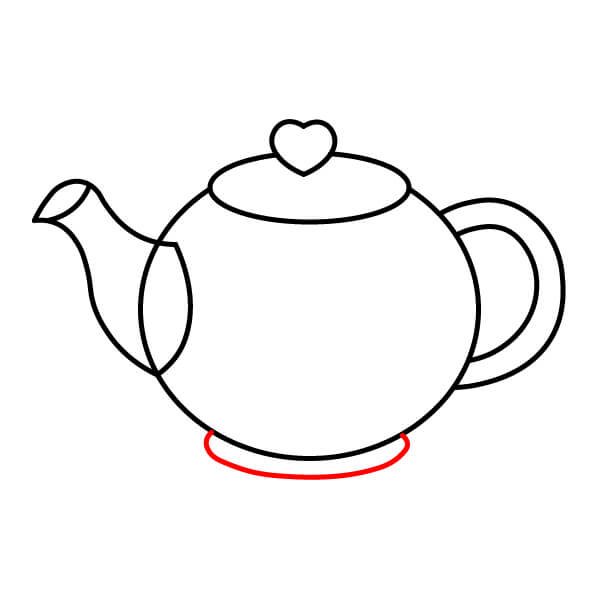 Pod hlavní částí nakreslete široký, nízký a zakřivený ovál, který vytvoří základnu nebo nohu konvice.