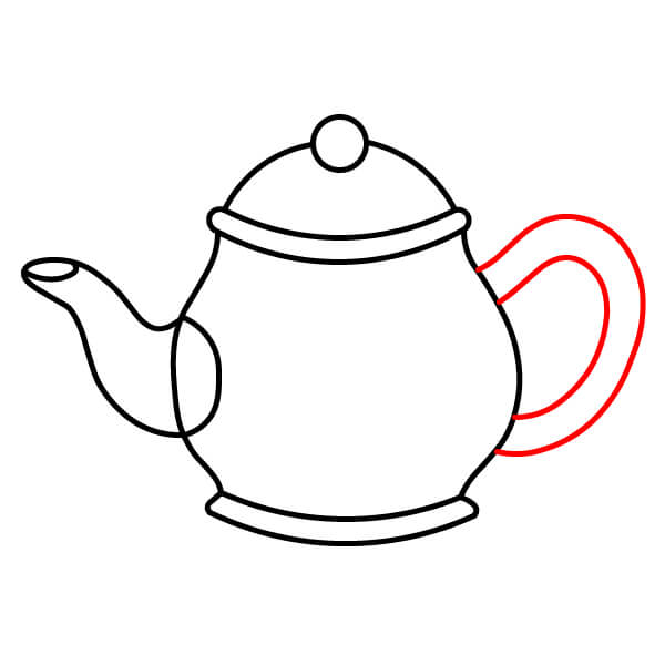Na pravé straně konvice nakreslete klasickou rukojeť ve tvaru písmene C. Je tvořena dvěma rovnoběžnými křivkami.