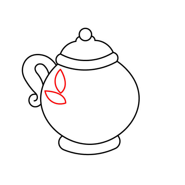Na boku těla konvice, poblíž rukojeti, nakreslete dva malé, zakřivené listy.
