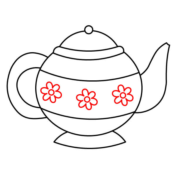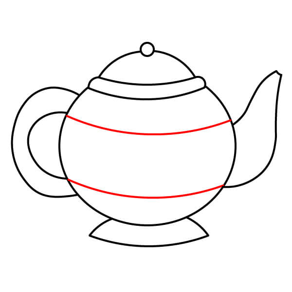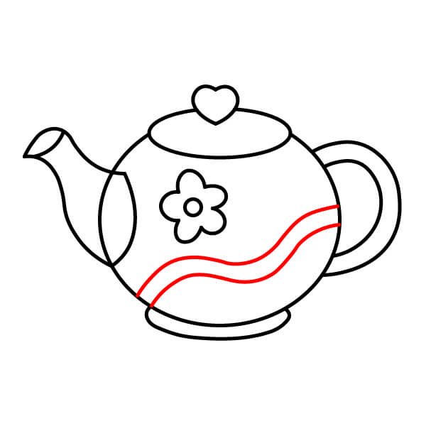 Na spodní polovinu konvice nakreslete vlnitý pruh, dvě čáry táhnoucí se od výlevky k rukojeti.