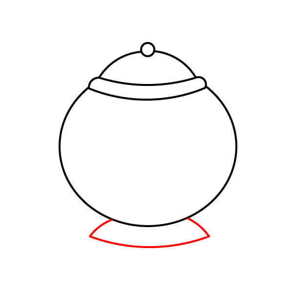 Pod hlavní část nakreslete krátkou, mírně zakřivenou čáru, která bude představovat základnu nebo nohu konvice.