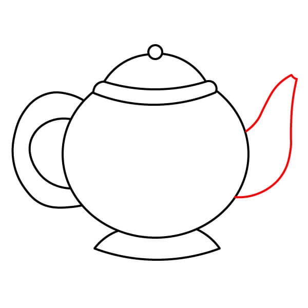 Na pravé straně těla konvice nakreslete výlevku. Výlevka by měla být zužující se a zakřivená směrem ven.