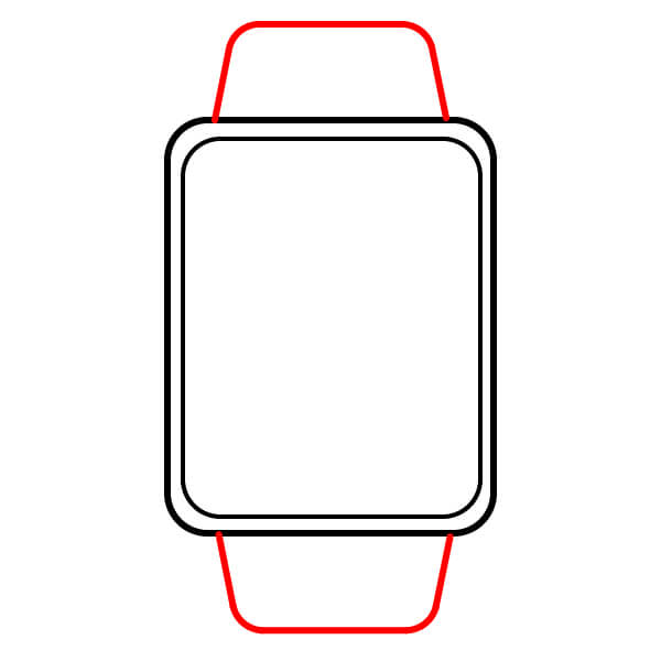 Začněte nakreslením jednoduchého zaobleného obdélníku. Ten vytvoří základní tvar těla chytrých hodinek.