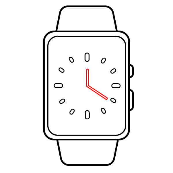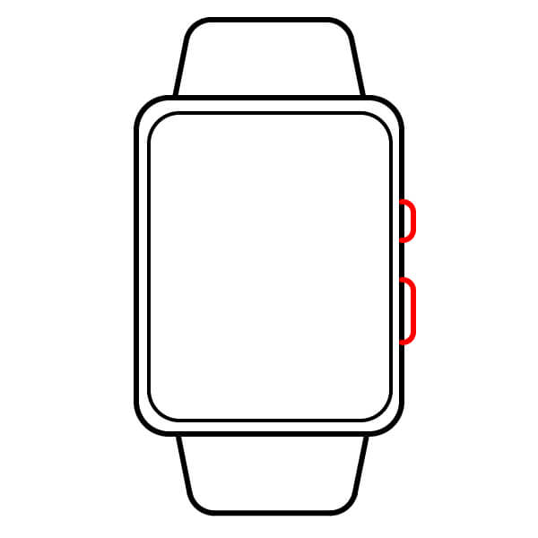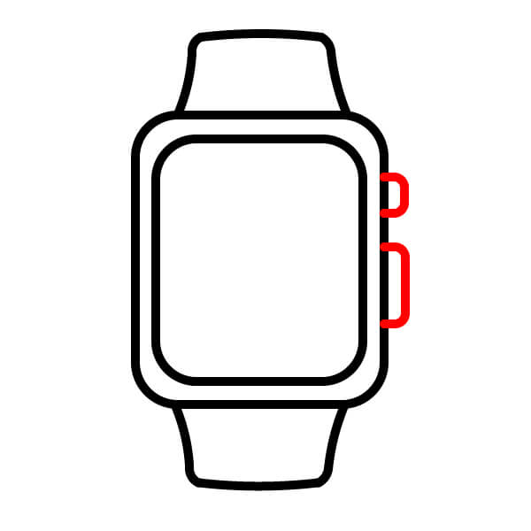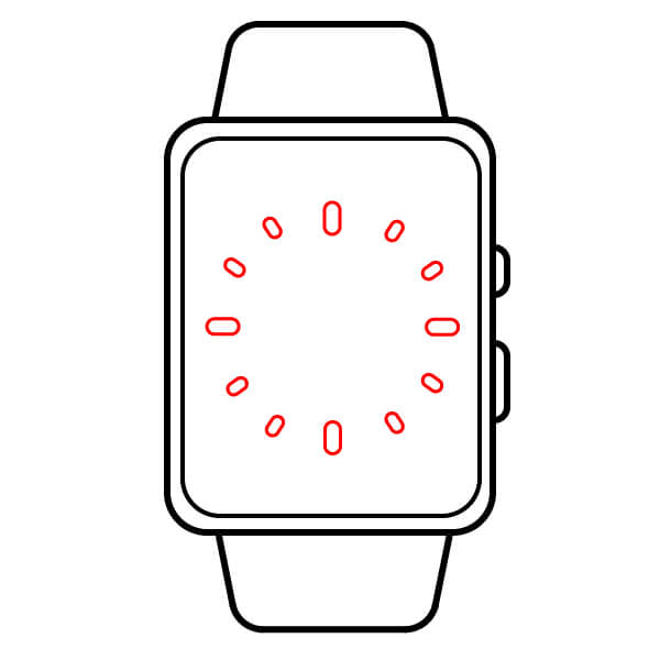 Na pravé straně pouzdra nakreslete dva malé, dlouhé kruhy. To jsou boční tlačítka nebo digitální korunka/klávesy.