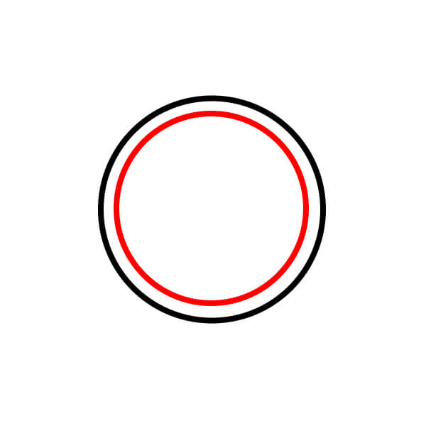 Uvnitř prvního kruhu nakreslete další dva soustředné kruhy blízko sebe. Vzdálenost mezi vnějším kruhem a vnitřními kruhy definuje okraj a vnitřní kruh je ciferník neboli číselník.