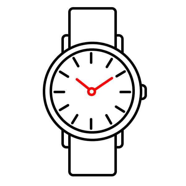 Dokončete kresbu vybarvením. Vnější pouzdro a poutka vybarvěte červeně. Řemínek vybarvěte hnědě a vnitřní ciferník světle modrou nebo mátově zelenou. Hodinové značky vybarvěte černě. Hodinová a minutová ručička může být vybarvena kontrastní barvou, například šedou, a vteřinová ručička může být vybarvena černě nebo výraznou barvou pro zdůraznění.