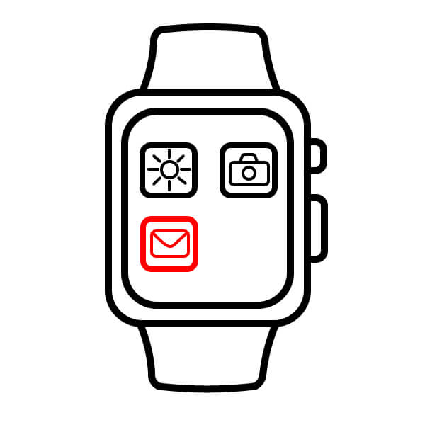 Pod ikonou slunce/jasu nakreslete třetí ikonu aplikace. Toto je zaoblený čtverec obsahující ikonu obálky/pošty.