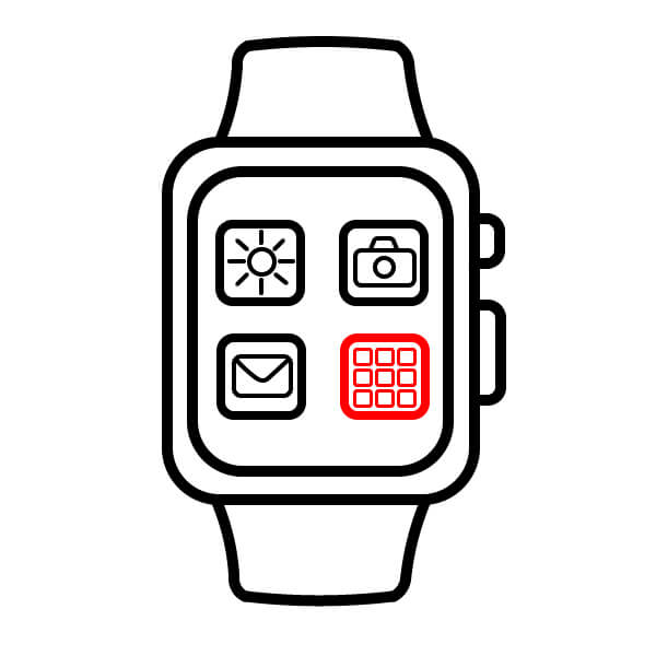 Doplňte sadu čtyř ikon nakreslením čtvrté ikony pod ikonou fotoaparátu. Tato ikona je zaoblený čtverec s mřížkou 9 čtverců (představující zásuvku aplikací nebo hlavní nabídku).