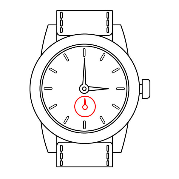 Nakreslete malý kruh ve spodní části ciferníku (kolem 6 hodin). Jedná se o dílčí ciferník, který se obvykle nachází na chronografech, a dovnitř přidejte malou ručičku.