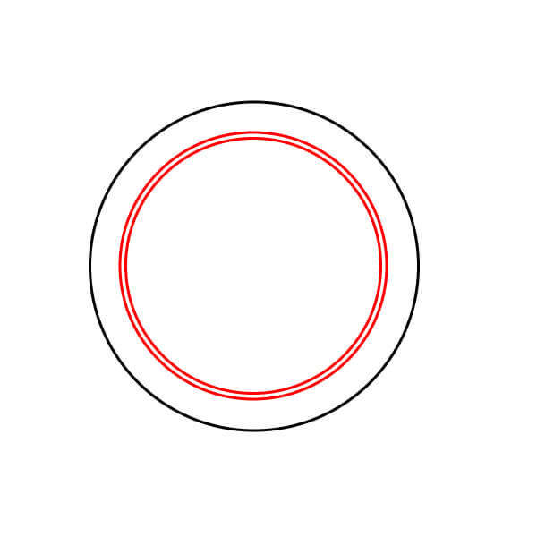 Uvnitř prvního kruhu nakreslete další dva soustředné kruhy, blízko sebe. Tím vytvoříte tlustý vnější okraj (lunetu) a vnitřní ciferník (ciferník).