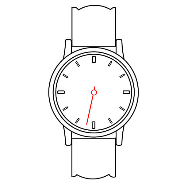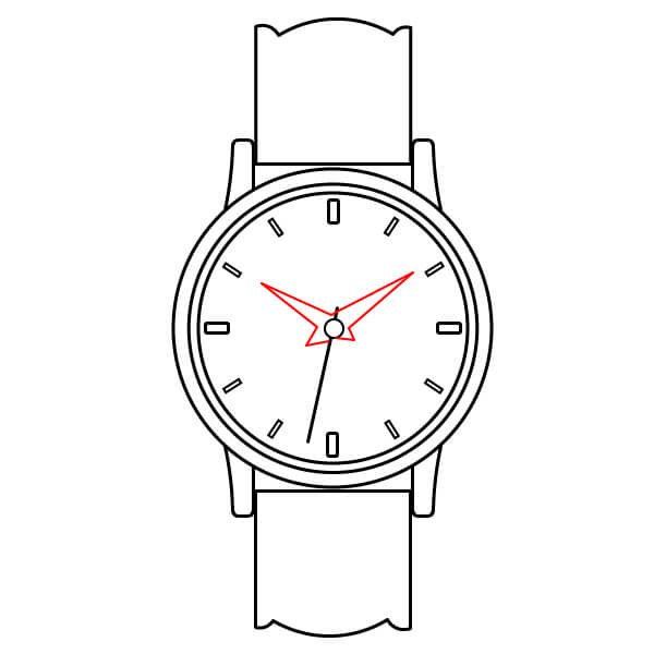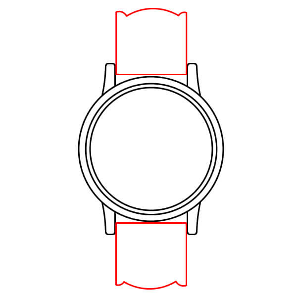 Nakreslete dvě křivky ve tvaru U, které se táhnou od horní ke spodní části pouzdra hodinek. Ty představují řemínek hodinek.