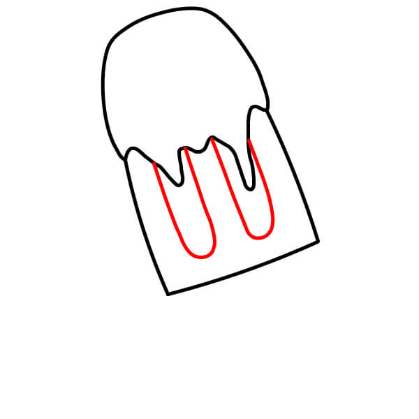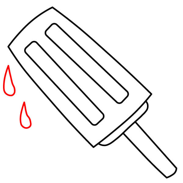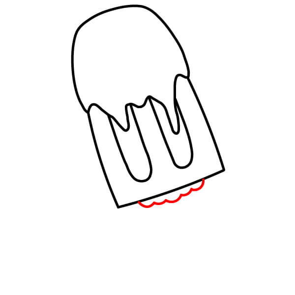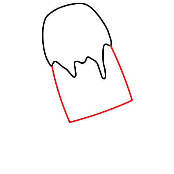 Nyní nakreslete obdélníkové tělo nanuku přímo pod rozpuštěnou horní částí.