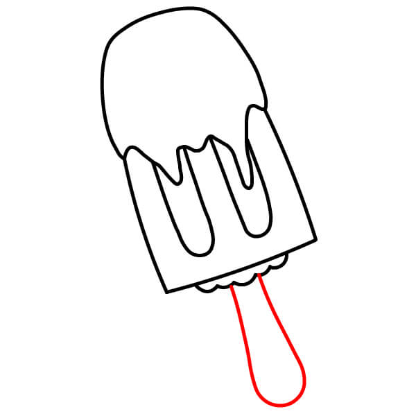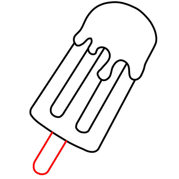 Nakreslete dřívko nanuku. Z prostředku spodní vlnité čáry veďte dvě rovnoběžné čáry směrem dolů a spojte je zaobleným koncem.