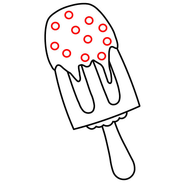 Do zaoblené horní části nanuku přidejte malé kruhové tvary. Ty představují kousky čokolády.