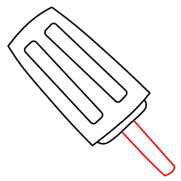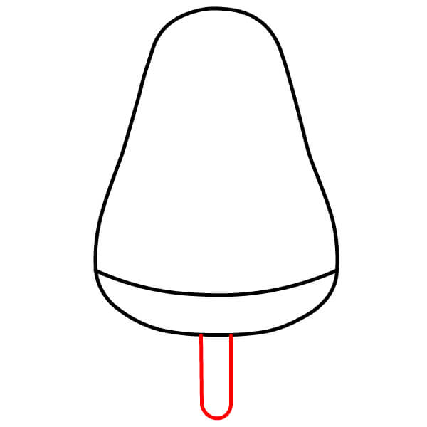 Nakreslete dřívko nanuku. Ze středu spodní části nanuku veďte dvě rovnoběžné čáry směrem dolů a spojte je zaobleným koncem.
