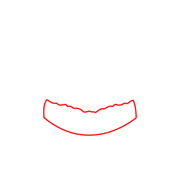 Začněte tím, že nakreslíte zakřivenou, nepravidelnou spodní část plátku melounu. Tento tvar by měl mít vlnitý horní okraj a hladký, zakřivený spodní okraj.