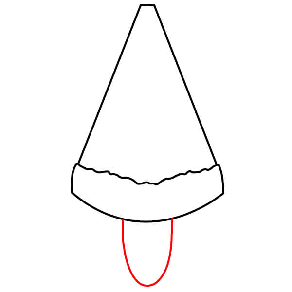 Začněte nakreslením široké, mělké zakřivené čáry, která tvoří spodní okraj nanuku. Na obou koncích by měla být mírně špičatá.