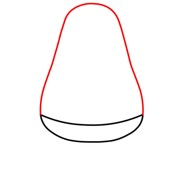Nyní nakreslete hlavní tělo nanuku. Z konců zakřivené čáry veďte dvě čáry směrem nahoru, mírně je zakřivte dovnitř a nahoře je spojte zaoblenou linií.