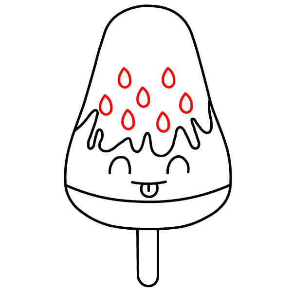 Přidejte stékající „polevu“ nebo rozpuštěnou část. Nakreslete vlnitou, nepravidelnou čáru přes střed nanuku, která bude naznačovat efekt stékání.