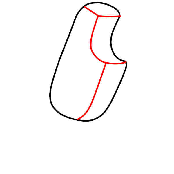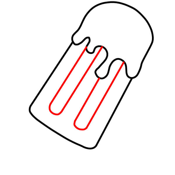 Uvnitř hlavního obdélníkového tvaru nakreslete dvě svislé čáry ve tvaru písmene U. Tyto čáry rozdělí nanuk na tři části.