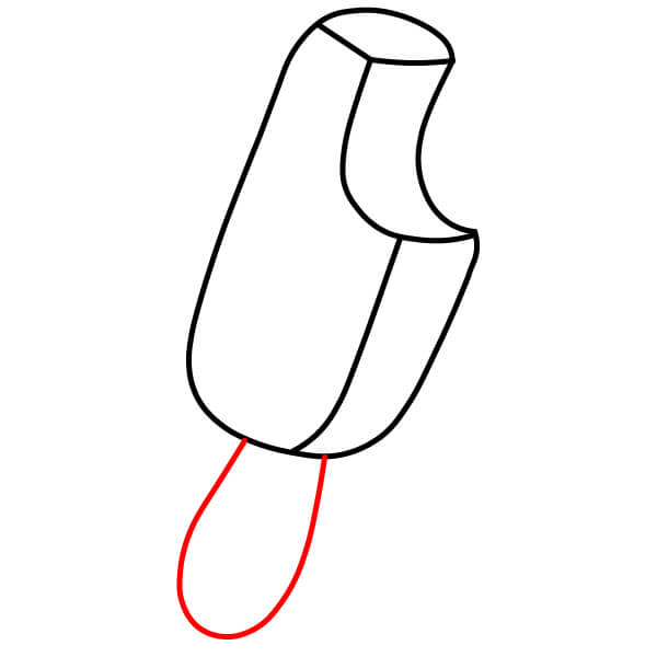 Nyní nakreslete krátkou zakřivenou čáru na spodním okraji těla nanuku. Ta bude představovat horní část místa, kde je zasunuté dřívko.