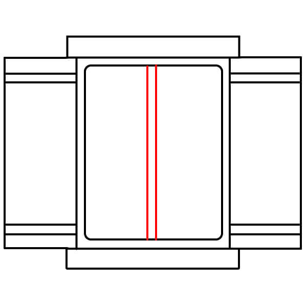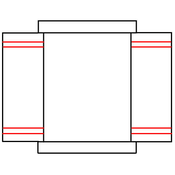 Spojte dvě čáry nahoře a dole vodorovnými čarami. Poté přidejte čáry kolem horní a dolní vodorovné části, čímž vytvoříte horní a dolní rámy oken.