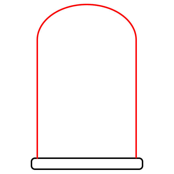 Nad obdélníkem nakreslete dvě svislé čáry směřující nahoru. Spojte dva vrcholy těchto svislých čar půlkruhem a vytvořte oblouk.