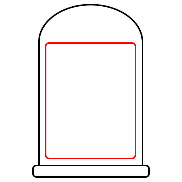 Nakreslete svislý obdélník, který je uvnitř mírně zaoblený.