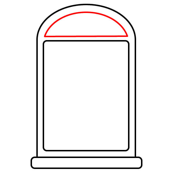 Uvnitř zakřivené horní části okna nakreslete vodorovnou čáru a půlkruh. Tím vytvoříte samostatnou část v horní části okna.