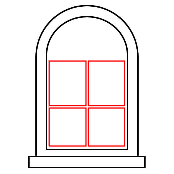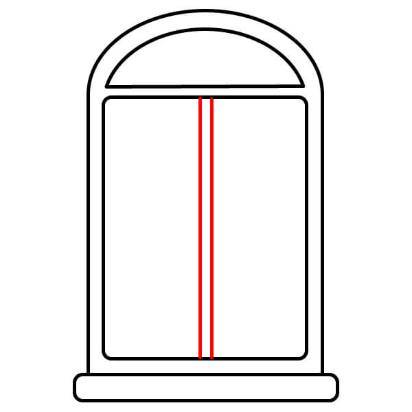 Nakreslete svislou čáru uprostřed hlavního okna, pod obloukem. Tato čára rozděluje okno na dvě dlouhé obdélníkové tabule.