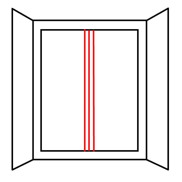 Nakreslete svislou čáru uprostřed vnitřního rámu okna. Tato čára rozděluje okno na dva rámy.