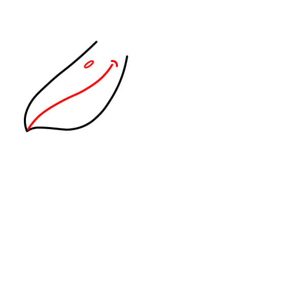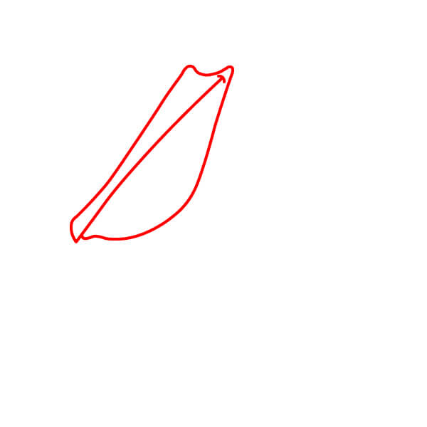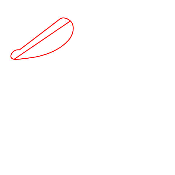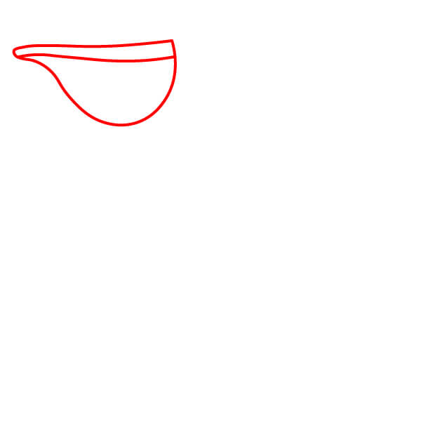 Nakreslete dlouhý, mírně zakřivený tvar pro zavřený zobák. Na špičce přidejte malý zaoblený oblouk. Uvnitř nakreslete šikmou čáru, která oddělí horní a dolní část zobáku.
