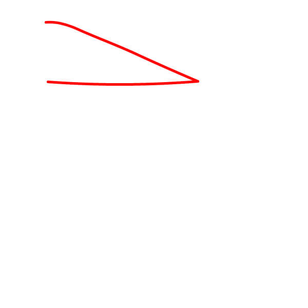 Začněte kreslením dvou spojených rovných čar, které vytvoří dlouhý, špičatý tvar ve tvaru písmene V. To bude horní část otevřeného zobáku pelikána.