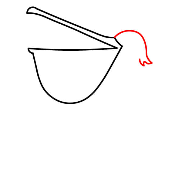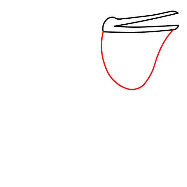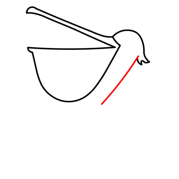 Nakreslete odpovídající spodní linii pro dolní část otevřeného zobáku, mírně zakřivenou. Pod ní nakreslete velkou, hlubokou křivku ve tvaru U, která se připojí k zobáku a vytvoří typický hrdelní vak.