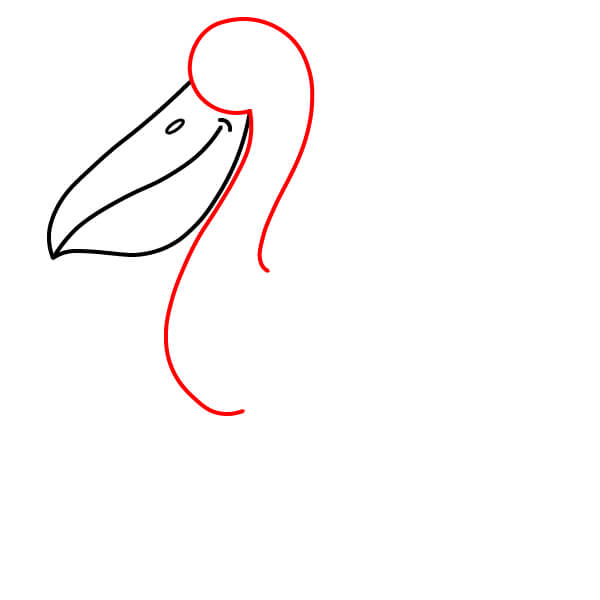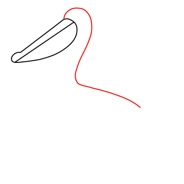 Od zadní části zobáku nakreslete zakřivenou čáru směrem nahoru, která vytvoří vršek hlavy, a poté dlouhou elegantní křivku ve tvaru S směřující dolů pro začátek krku.