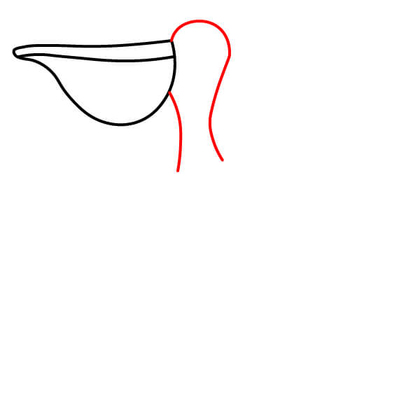 Nakreslete dvě zakřivené čáry směřující nahoru a mírně dozadu od konce zobáku, čímž vytvoříte začátek krku a zadní část hlavy.