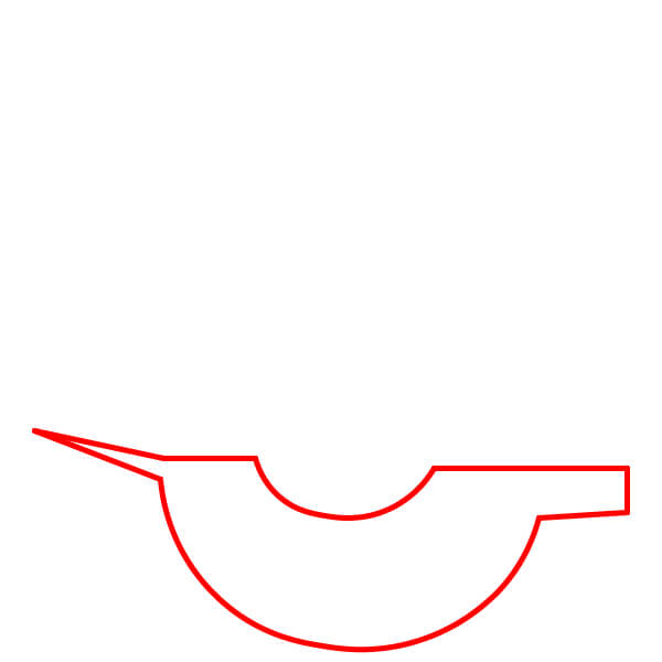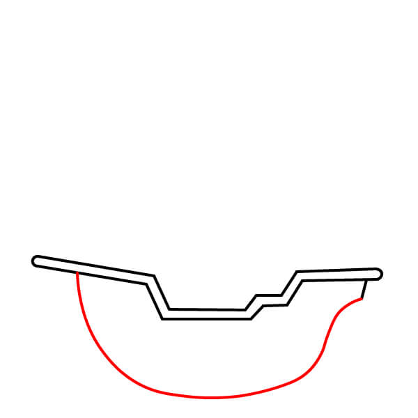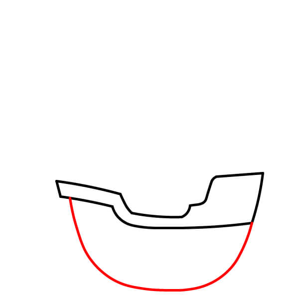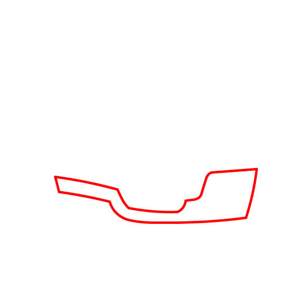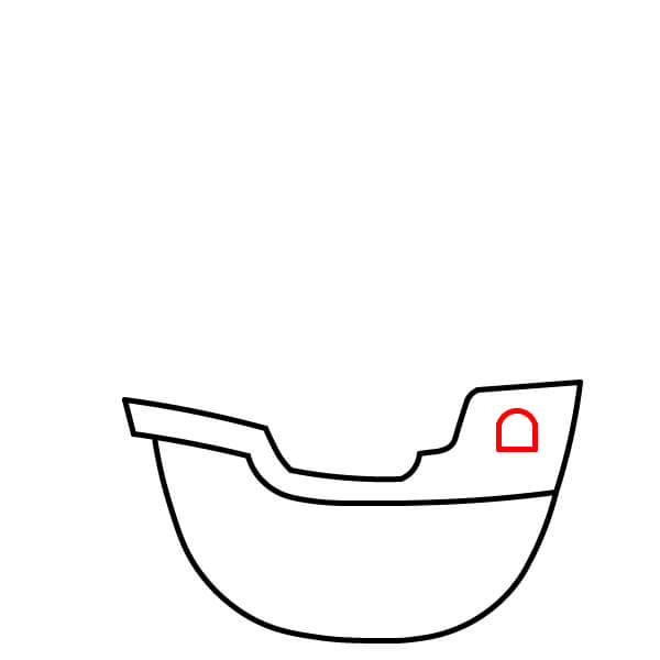 Začněte tím, že nakreslíte vnější obrys trupu lodi. Tento tvar je dole zaoblený, má špičatou příď (přední část), vysokou plochou záď (zadní část) a široký výřez ve tvaru U pro střední palubu.
