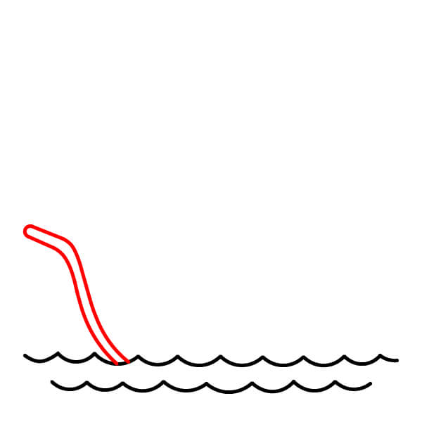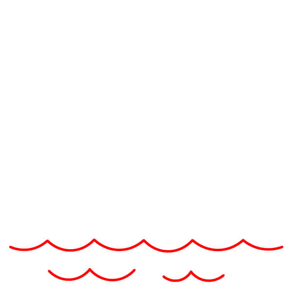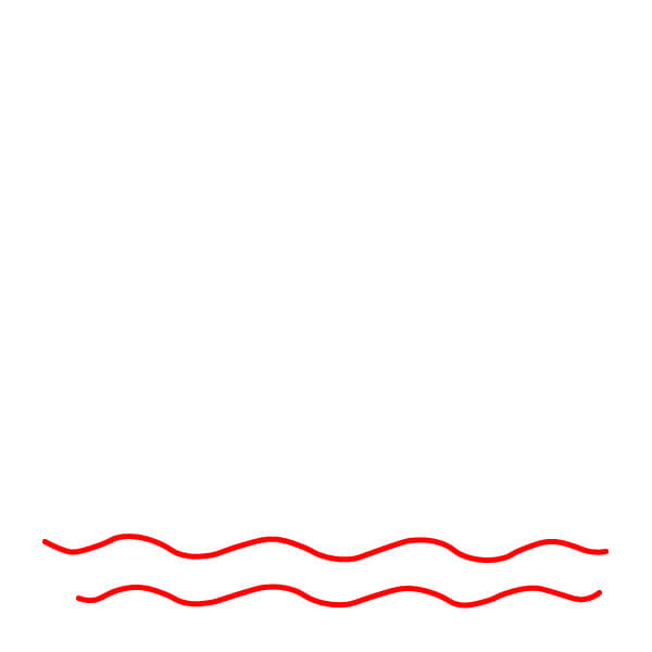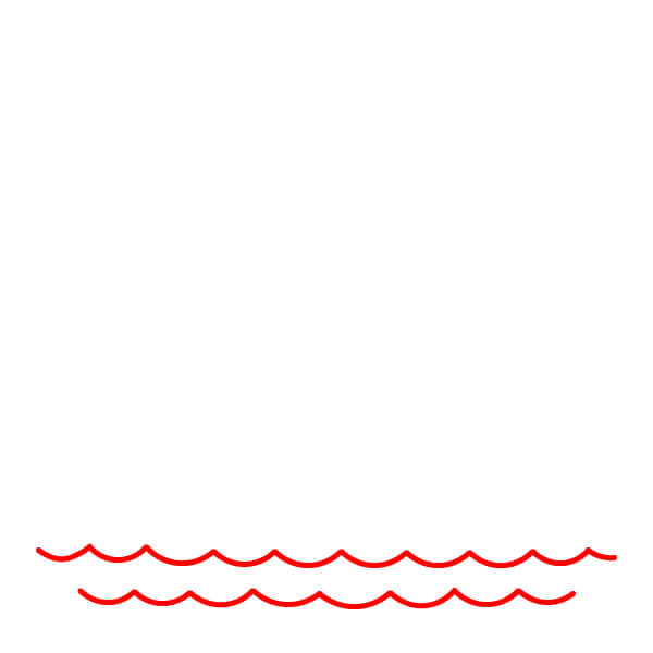 Začněte tím, že ve spodní části kreslicí plochy nakreslíte dvě řady vlnitých čar. Jedna řada vln by měla být souvislá, zatímco druhá má uprostřed malou mezeru. Tyto čáry představují vodu.